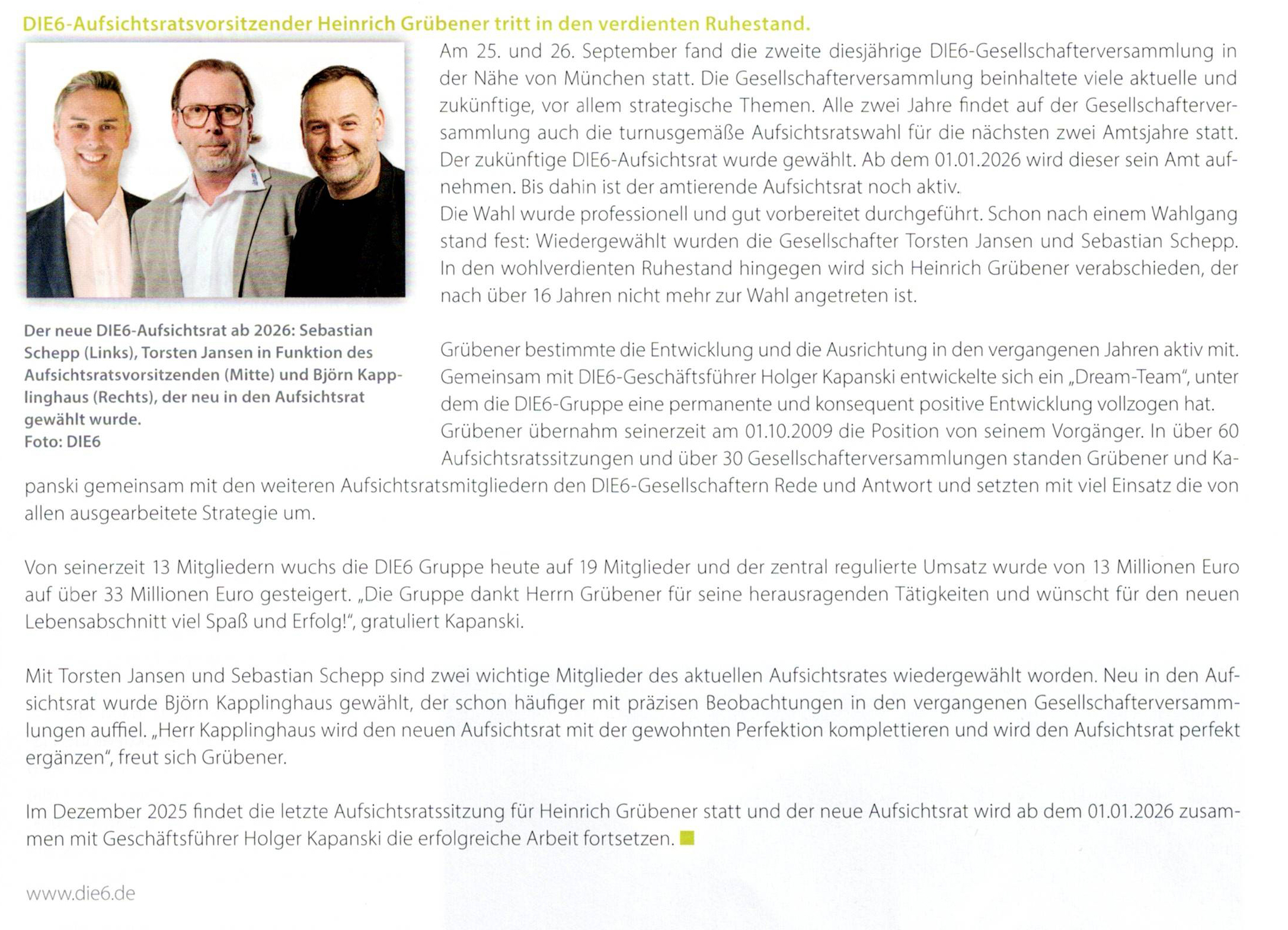 DIE6 wählt Aufsichtsrat neu